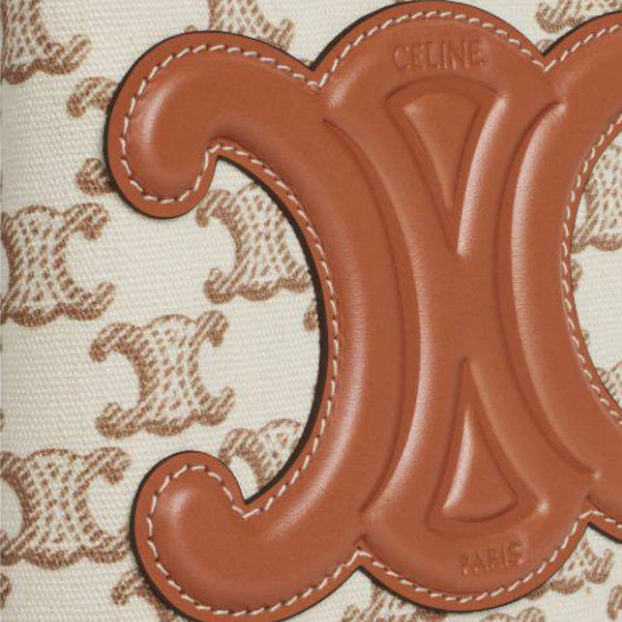 Celine Teen Drawstring In Textile With Triomphe Canvas Print And Calfskin White
