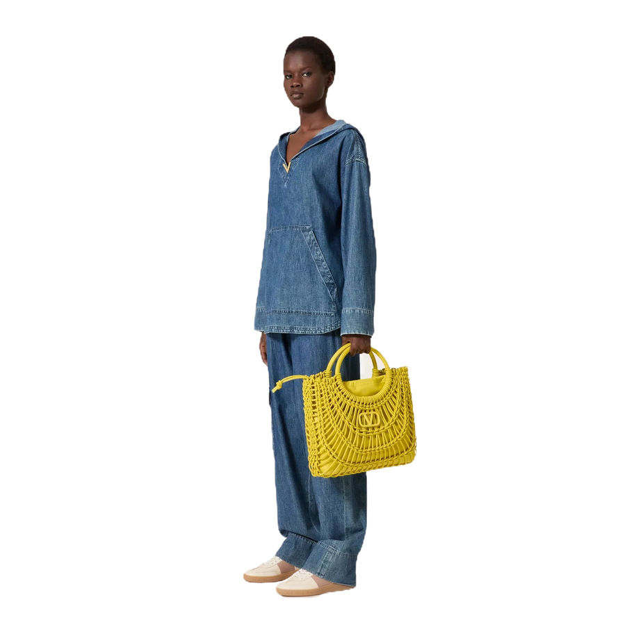 Valentino Allknots Woven Leather Shopper Cedar Yellow
