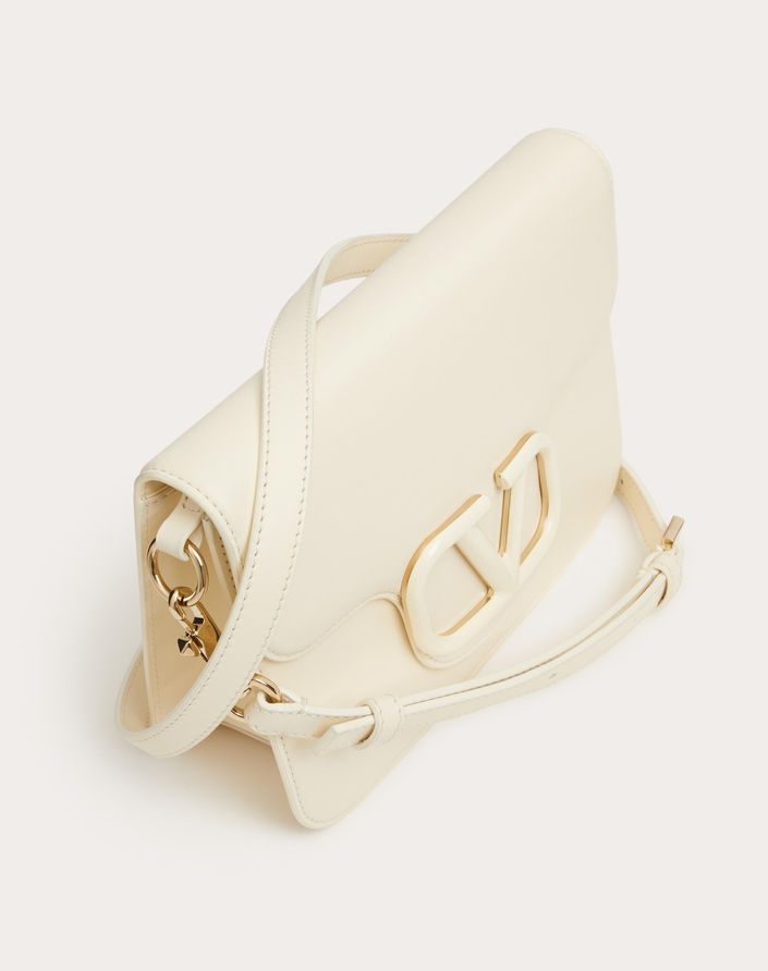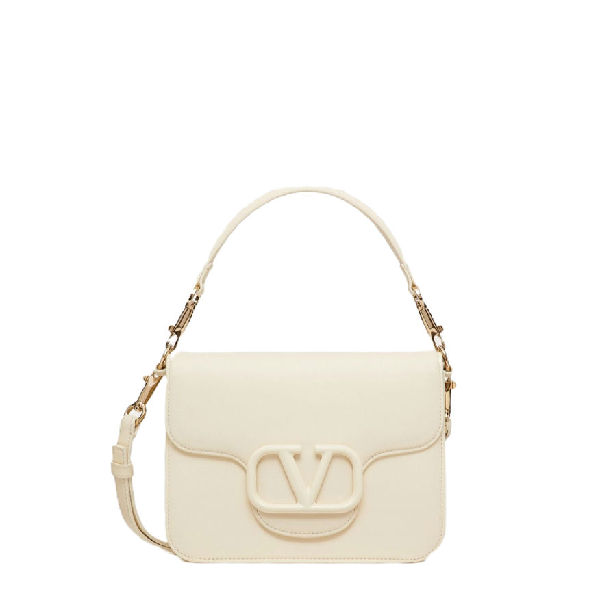 Valentino Garavani Loco Calfskin Shoulder Bag W Leather Handle Ivory M