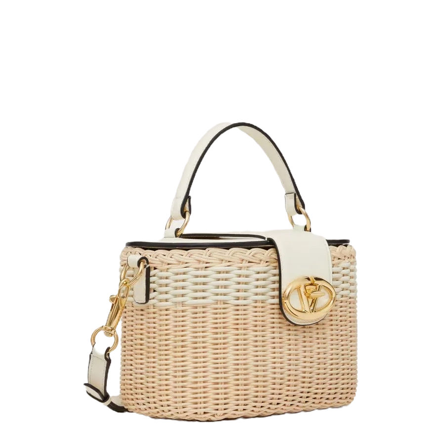 Valentino Vlogo Signature Wicker Vanity Bag Naturale-Ivory